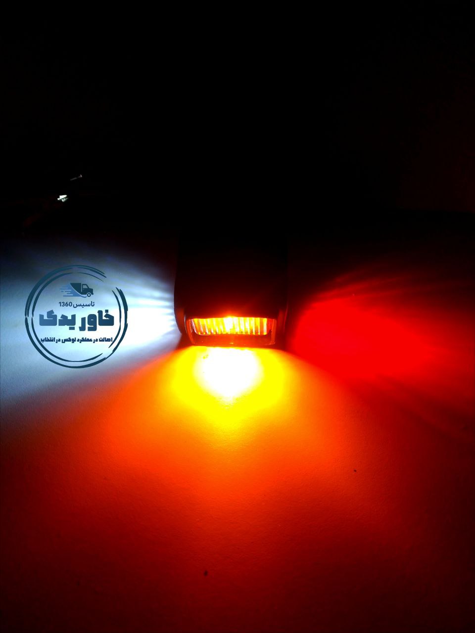 چراغ بغل ماشین سنگین سه طرفه سه رنگ زرد قرمز و سفید مدل مایان پایه لاستیکی متوسط 24 ولت