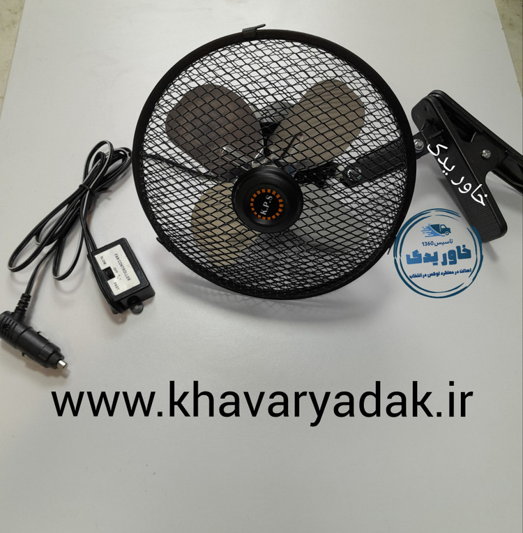 پنکه گیره دار ۸ اینچ با برق ۱۲ ولت مناسب سواری ، نیسان ، وانت