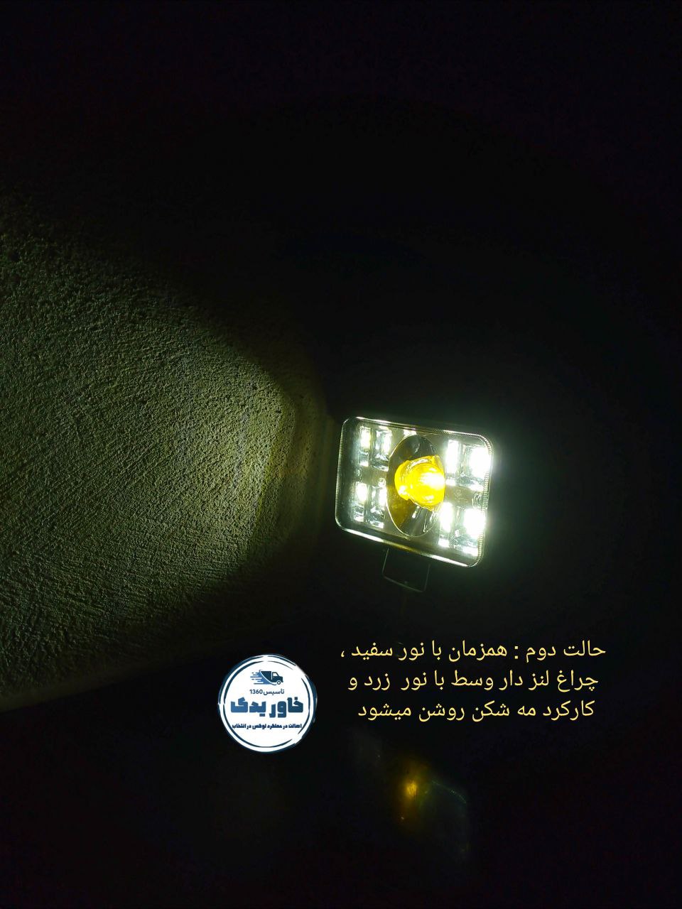 این پروژکتور با دو حالت نوردهی که حالت اول نور سفید با اس ام دی هایی که در چهار کنج پروژکتور تعبیه شده روشن شده و نور سفید با برد و حجم خوبی ارائه میده و در حالت دوم نور زرد با کارکرد مه شکن از تک لنز بزرگ که در وسط پروژکتور هستش روشن میشه ، این پروژکتور برای نصب در جلوی ماشین های سنگین برای بهبود نور چراغ های جلو بسیار مناسب می باشد ، جنس بدنه از فیبر فشرده شده و قاب روی پروژکتور لاک ضخیم شفاف می باشد، با احترام قیمت درج شده برای هر عدد می باشد ، ، مدل 12 ولت این محصول که مناسب خودروهای سواری ، وانت ها و موتور می باشد در غرفه موجود است. این محصول در روز های بارانی ، مه آلود و برفی عملکرد بسیار قوی دارد.